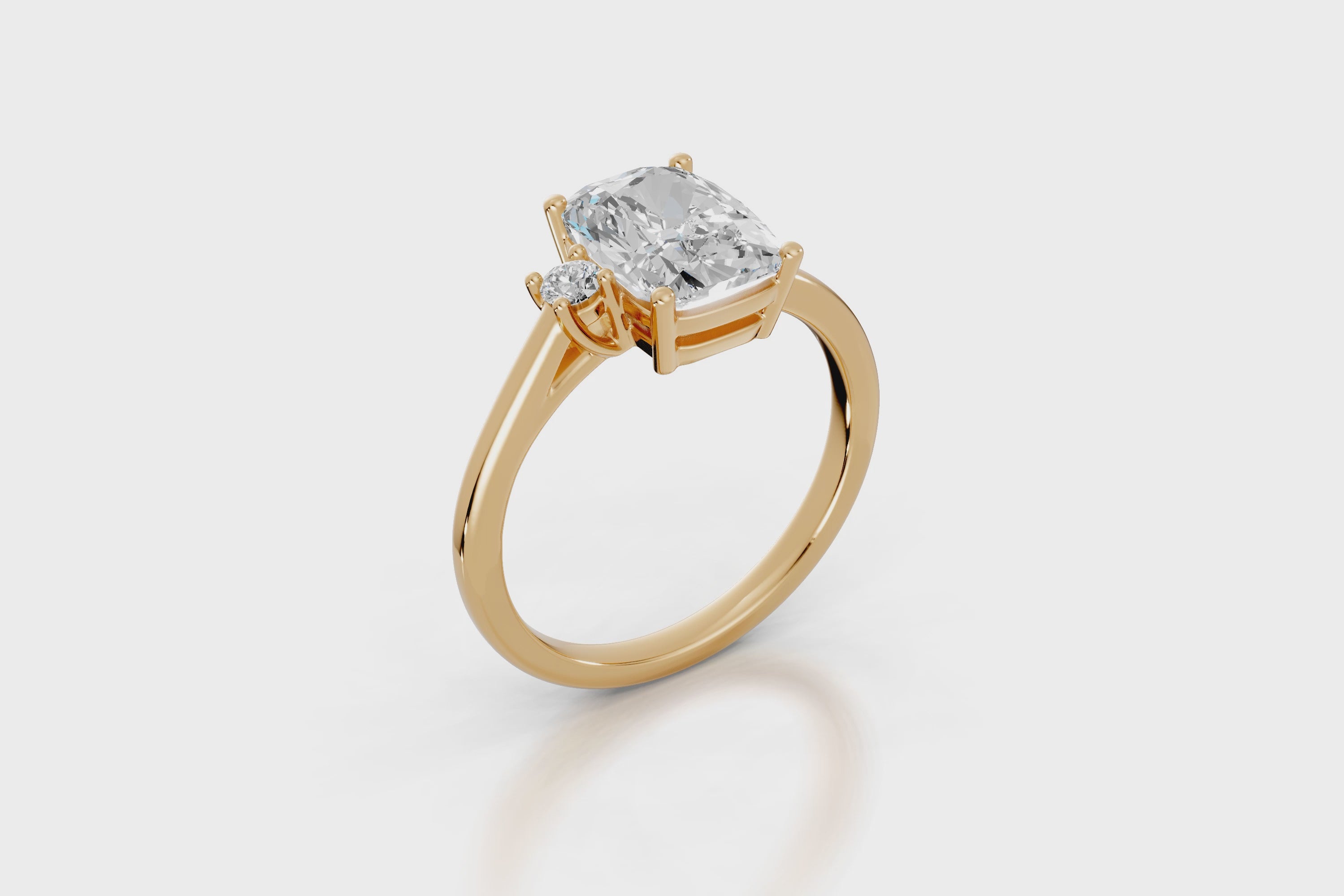 - Lab Grown Brillant in Weiß, abgestimmt mit 0,06 ct beim 2,00 ct elongated Cushion oder mit 0,11 ct beim 3,00 ct elongated Cushion.